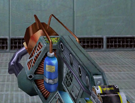 The Gluon gun (AKA "The Egon") is a prototype weapon developed by the Black Mesa Weapons Research Facility. It emits a constant stream of energy that disingrates anything in it's path. The Gluon Gun and the Guass Gun share the same ammo.